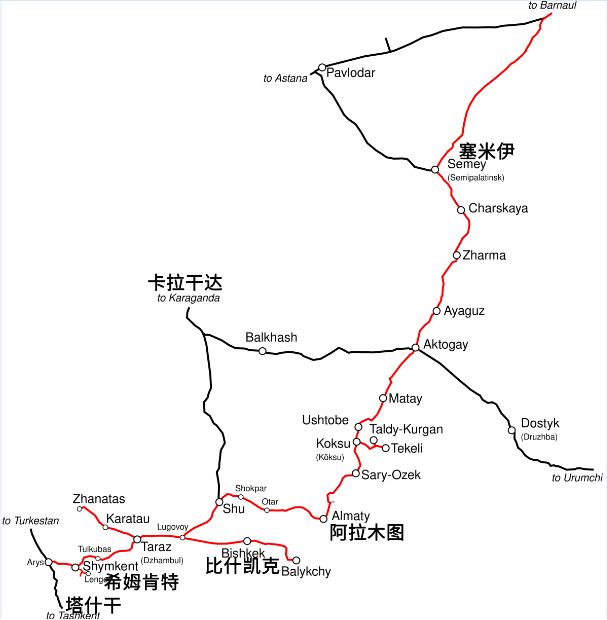 十月革命爆发后,俄共(布)也在哈萨克斯坦建立了苏维埃政权。1926年,苏联政府为了沟通中亚和内地交通,决定兴建一条从塔什干通往新西伯利亚与西伯利亚大铁路汇合的中亚铁路动脉。
