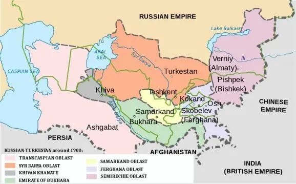 19世纪中后期,俄国利用英国在阿富汗战争(1879年)“吃瘪”以及清廷的衰落,征服了乌兹别克人、塔吉克人以及吉尔吉斯人等民族。