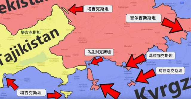 由于乌兹别克人、塔吉克人和吉尔吉斯人交错杂居。有些民族生活在其他民族的包围圈里,形成的“飞地”。