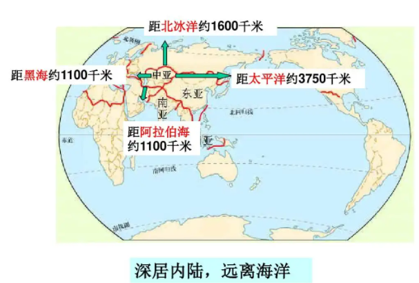 中亚是世界上距离海洋最远的地区。中亚国家吉尔吉斯斯坦的首都比什凯克距离海洋2060公里,是世界上距离海洋最远的首都。