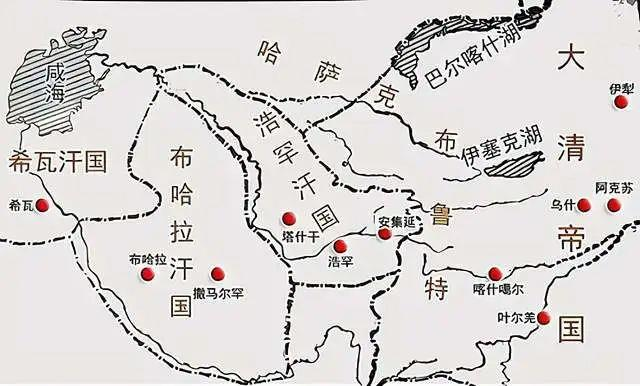 ▲沙俄入侵中亚之前,中亚主要由哈萨克和乌兹别克汗国组成