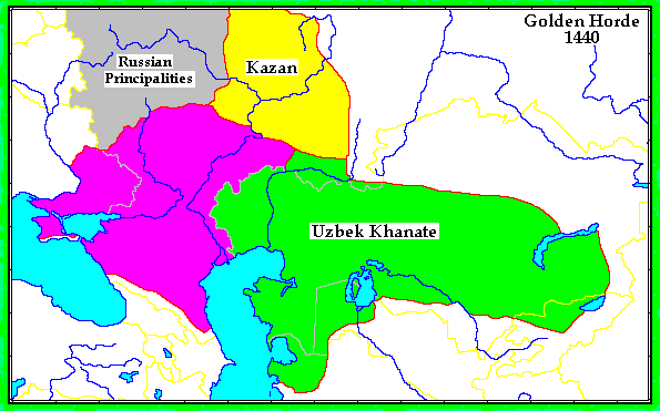 15世纪初金帐汗国瓦解,术赤子孙陷入混战。白帐汗国东部地区分裂出乌兹别克汗国。