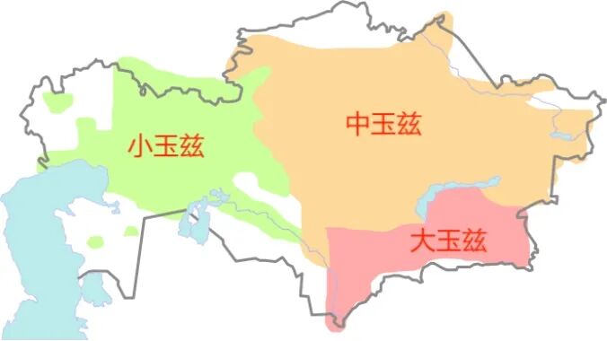 大玉兹主要分布在今哈萨克斯坦南部及东南部、我国新疆地区西北部以及乌兹别克斯坦部分地区,中玉兹主要分布在今哈萨克斯坦中东部的丘陵地带,小玉兹主要分布在今哈萨克斯坦西部和俄罗斯奥伦堡州部分地区。