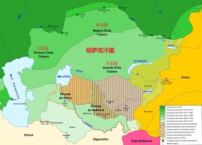 19世纪下半叶,沙俄控制了今哈萨克斯坦全境,延续300余年的哈萨克汗国体制和三玉兹制度不复存在。