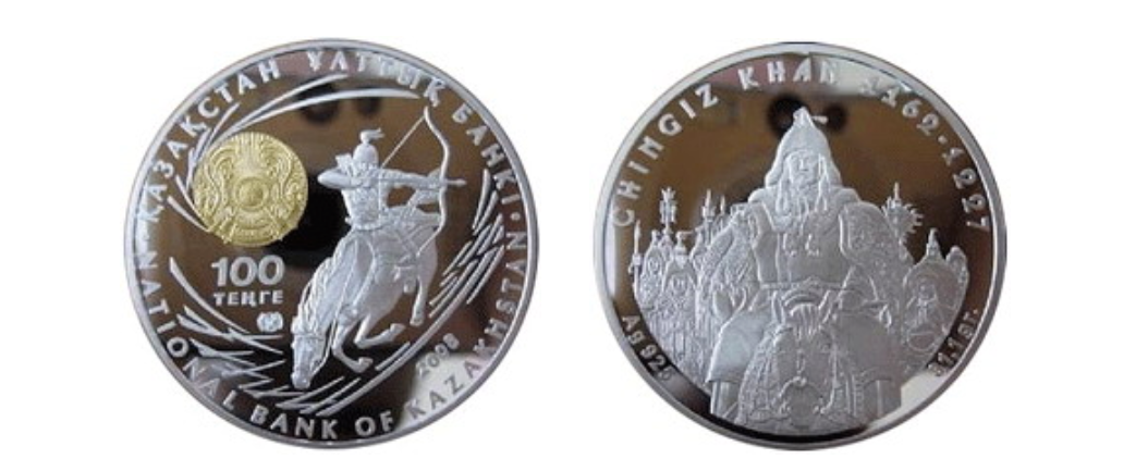 ▲2008年哈萨克斯坦发行的成吉思汗纪念银币