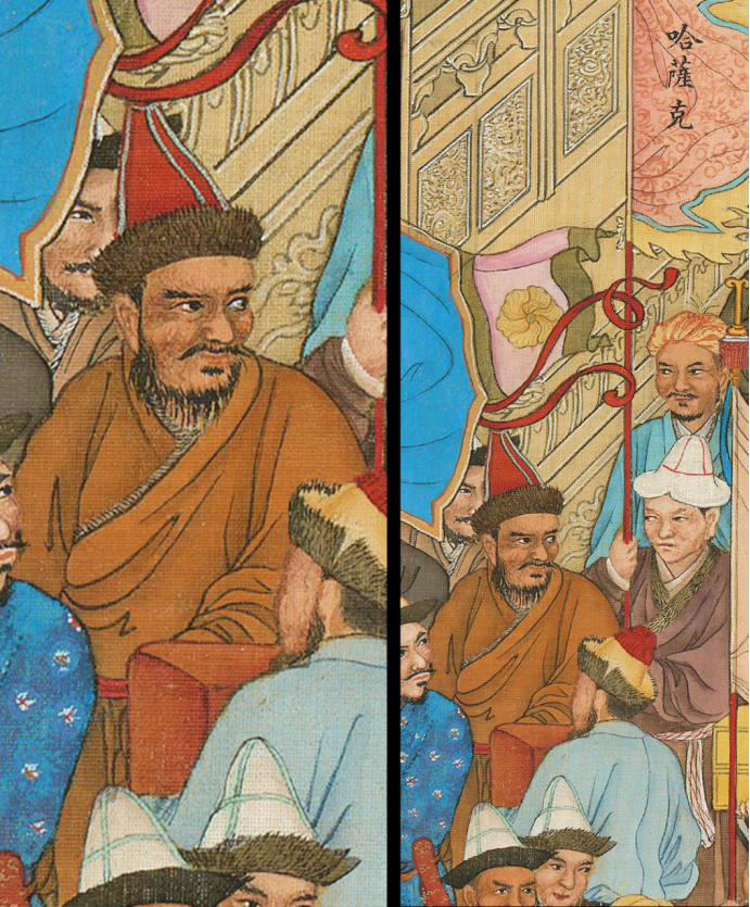 ▲清代乾隆时期《万国来朝图》中出现的哈萨克使臣
