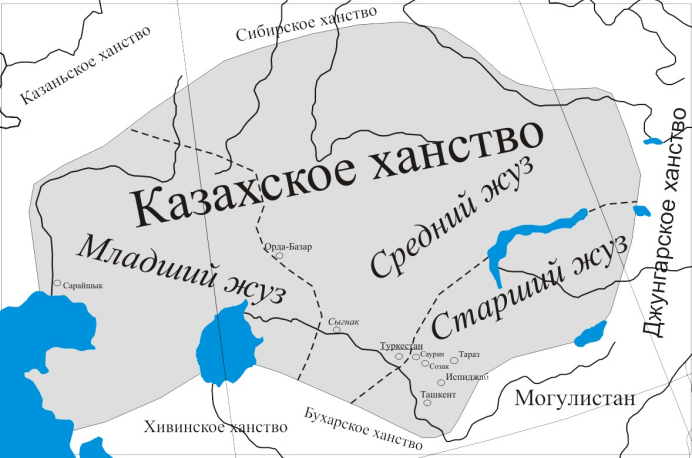 17世纪初期,哈萨克社会按照部族和地缘文化差异,逐渐分化成三部:大玉兹、中玉兹、小玉兹。“玉兹”的本义是“部分”、“地区”,具体是指哈萨克人的部族及其生活的领地。