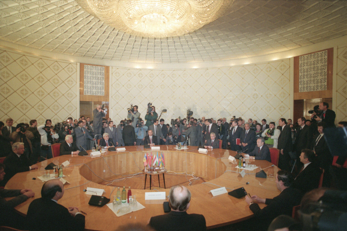 ▲1991年12月21日在哈萨克斯坦召开的阿拉木图会议宣告苏联解体