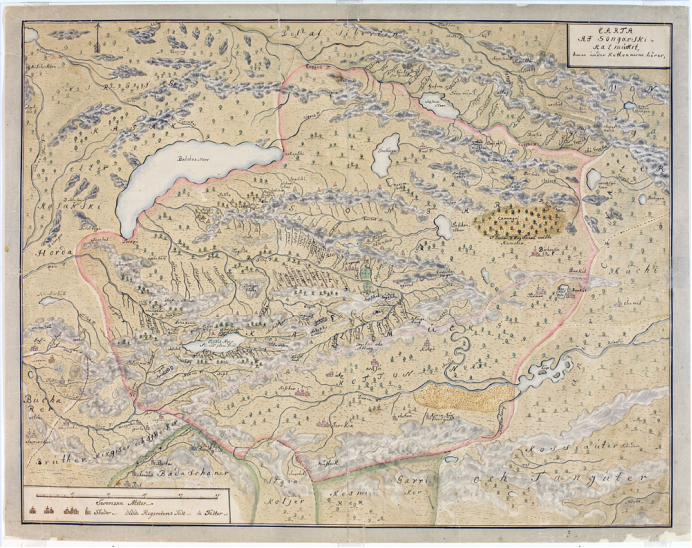 ▲瑞典人约翰·古斯塔夫·雷纳特绘制的准噶尔汗国地图