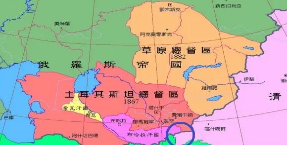 19世纪下半叶,沙皇俄国征服中亚汗国,抢占了中国巴尔喀什湖以东以南44万平方公里,哈萨克大玉兹、部分吉尔吉斯人从此脱离华夏。