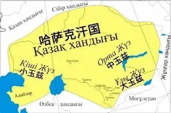 哈萨克人分布在七河流域和中亚北部草原上,分为大中小三玉兹,其中大玉兹分布在巴尔喀什湖以东以南,在清朝攻灭准噶尔汗国之后,归清朝统治。