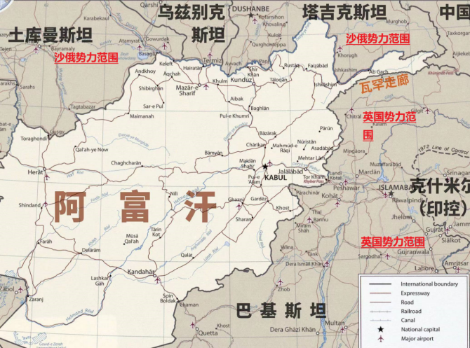 1885年,俄国与控制了阿富汗北上的英国,沿阿姆河取得势力平衡。