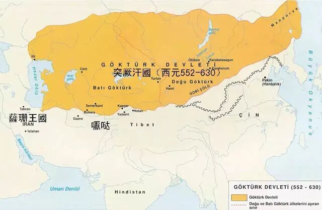 突厥6世纪兴起于蒙古草原和中亚,幅员一度非常辽阔。汉朝之后的另一个强大中原王朝-唐朝建立后,对突厥进行持续不断地打击。突厥王庭覆灭,各个部落纷纷西迁。