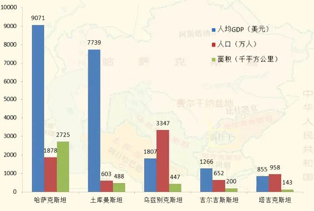 ▲中亚五国的经济概况,油气资源使哈萨克和土库曼先富起来