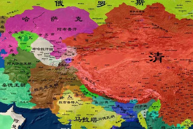 ▲18世纪末期,中亚的部分地区属于清朝版图