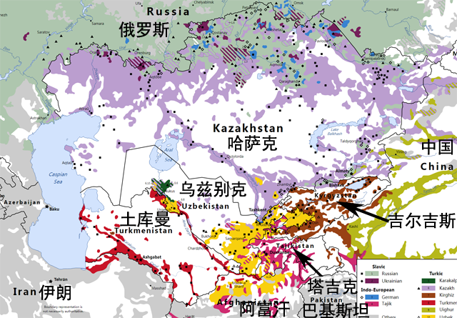 ▲中亚的民族分布,可以看出费尔干纳盆地人口密集,民族成分复杂