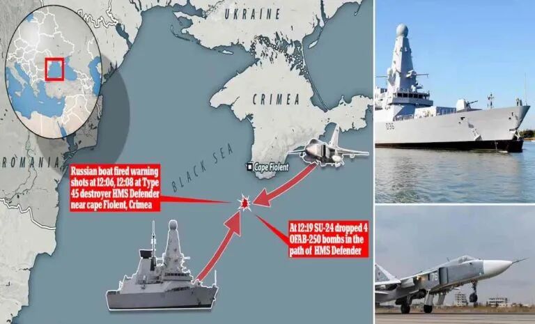 2021年6月23日,英国驱逐舰进入克里米亚海域。俄罗斯以英舰侵入自己领海3公里为由,派出轰炸机向英军投掷实弹,这是自冷战以来俄首次使用实弹威慑北约军舰。英俄在黑海的冲突引发世界关注。