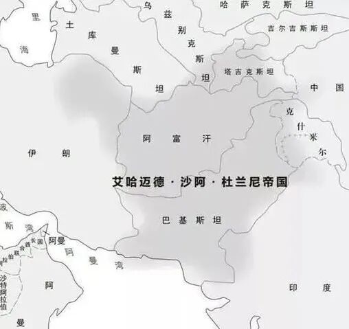 ▲杜兰尼王朝最大势力范围(蓝、绿色)