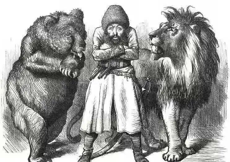 ▲夹在英(狮)俄(熊)之间的阿富汗