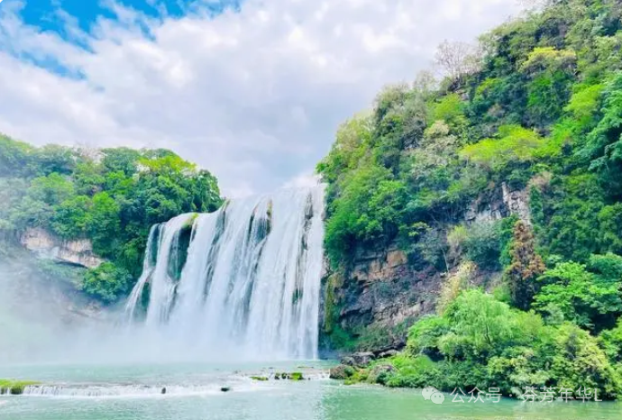 黄果树瀑布(Huangguoshu Waterfall):在中国贵州的崇山峻岭之间,黄果树瀑布以其亚洲之最的气势,傲然屹立在青翠的山谷中。这幅山水画卷的主角,犹如一条巨龙从云端俯冲而下,穿越苍翠的古榕树冠,直入碧绿如镜的犀牛潭。瀑布两侧,丹崖峭壁如削,古木参天,与清澈的潭水、飘渺的水雾共同营造出一幅如诗如画的中国山水意境。