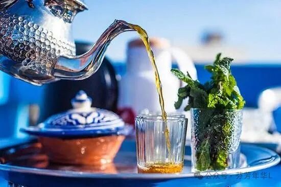 自从中国绿茶传入北非以来,摩洛哥人开始广泛饮用,并发明了帮助消化的“绿薄荷茶”,将其视为招待客人的上等佳品,一般宴客时会上三轮茶水,每一杯都充满了对客人的热情款待与尊重。
