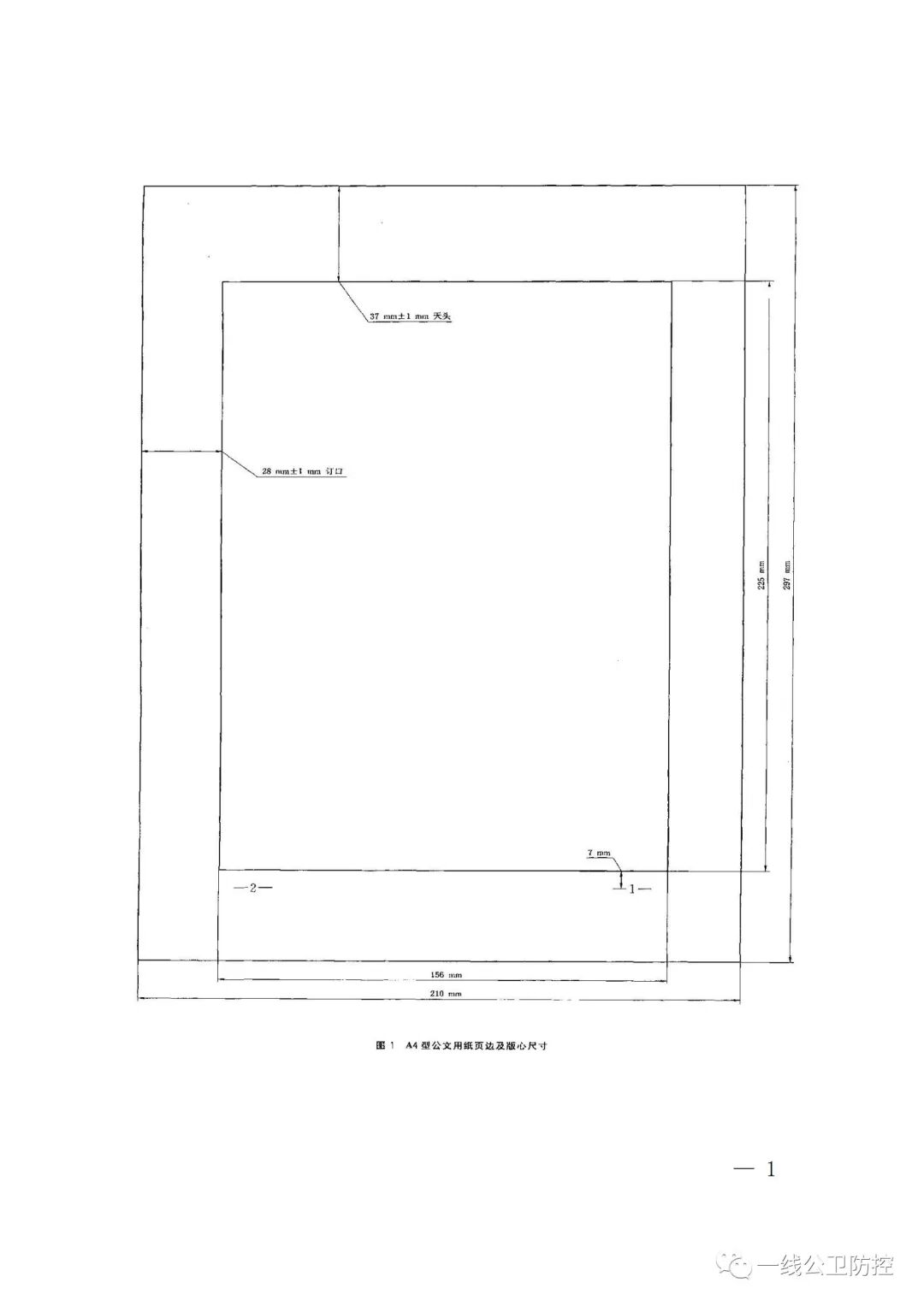 公文用纸天头(上白边)为37 mm±1 mm,公文用纸订口(左白边)为28mm±1mm,版心尺寸为156 mm×225 mm。