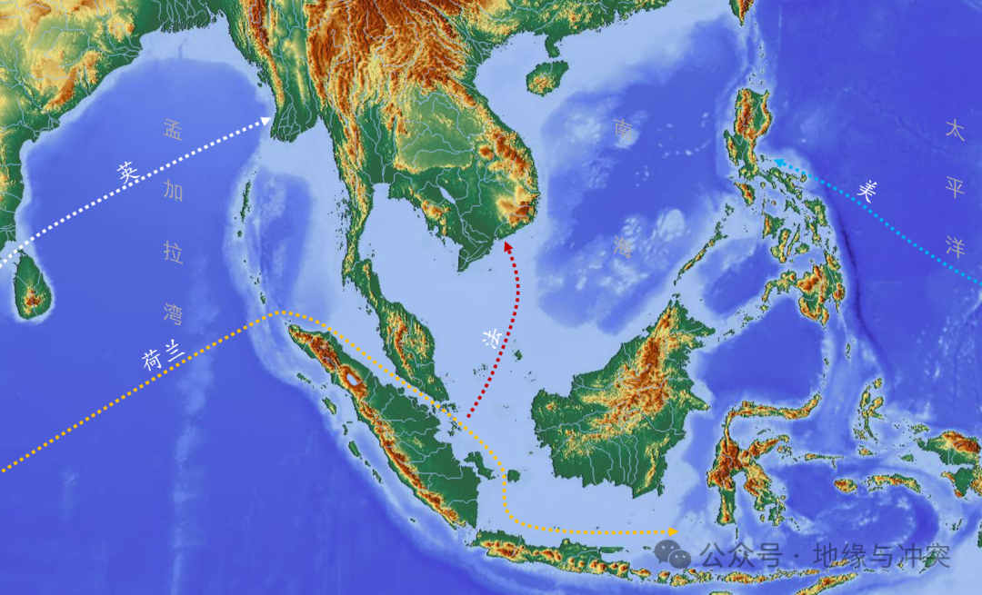 这一点不太好理解,因为从现代版图上看,明明中国距离东南亚更近。