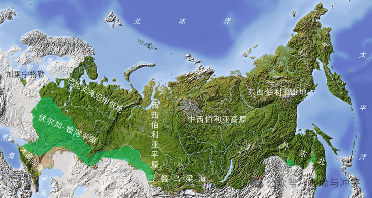 其中,伏尔加-顿河平原是俄罗斯的核心区,伏尔加河和顿河蜿蜒贯穿,水量巨大,总流域面积180万平方公里,相当于5个我国的东北平原。由北向南,全年积温逐渐升高,降水则逐渐减少,从森林沼泽逐渐过渡到草原,靠近里海则形成荒漠。