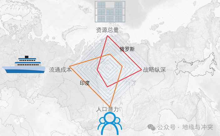 综合来说,与资源不足、战略纵深不足,但人口潜力巨大、地缘位置绝好的印度相当。