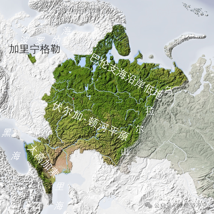 东欧平原在俄罗斯的部分分为四个板块,分别是核心区伏尔加—顿河平原、大高加索、巴伦支海沿岸低地和飞地加里宁格勒。