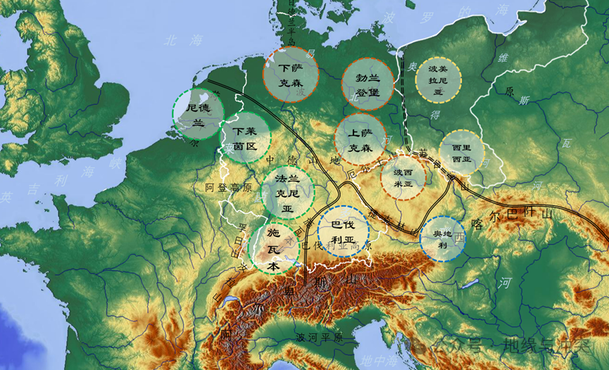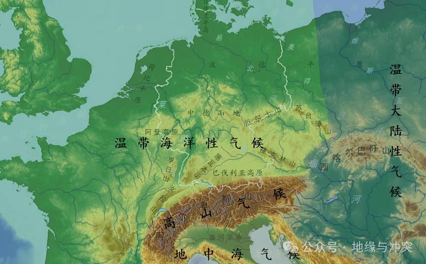 中欧和世界上其他地方不同,这里山地、高原、丘陵、平原均广泛分布,但都海拔不高,且相对平坦,形成很多小区域的同时,相互之间又形不成天险。