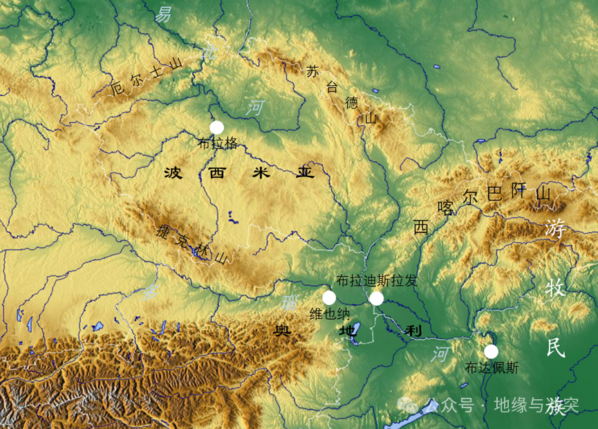 波西米亚则地形封闭,由苏台德山脉、厄尔士山脉和捷克林山脉合围,盆地地形,是现代捷克的主体部分,唯一中心城市布拉格现为捷克首都。