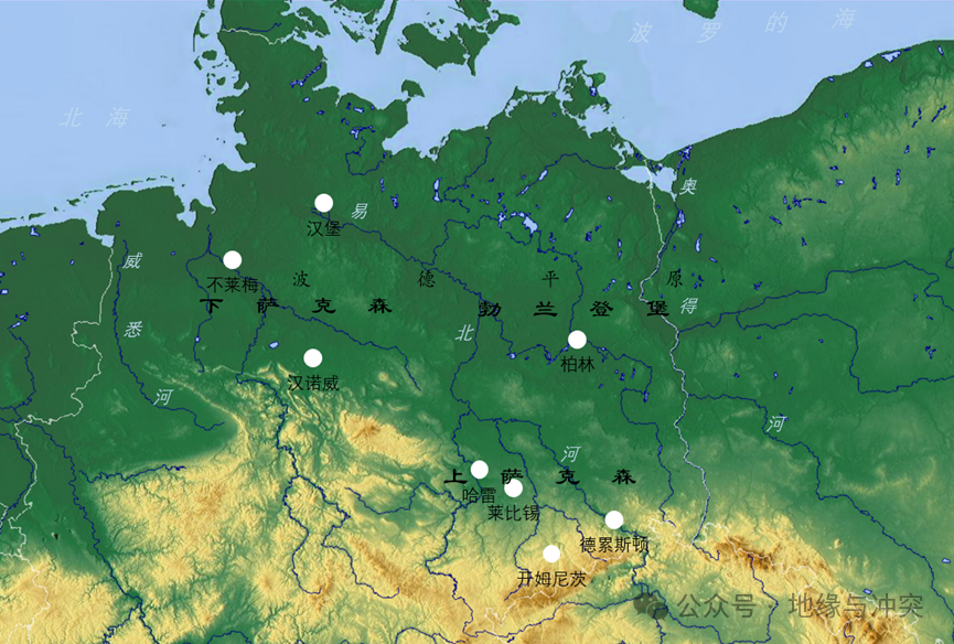 易北河流域为:波西米亚、上下萨克森和勃兰登堡;