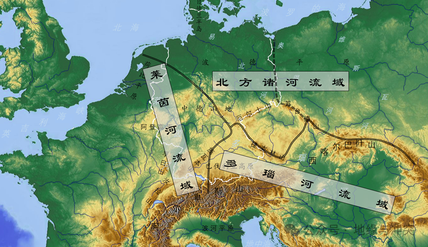 水运是中欧最核心的交通特征,根据河流走势,欧洲分为三大板块,分别是莱茵河流域、多瑙河流域和北方诸河流域。