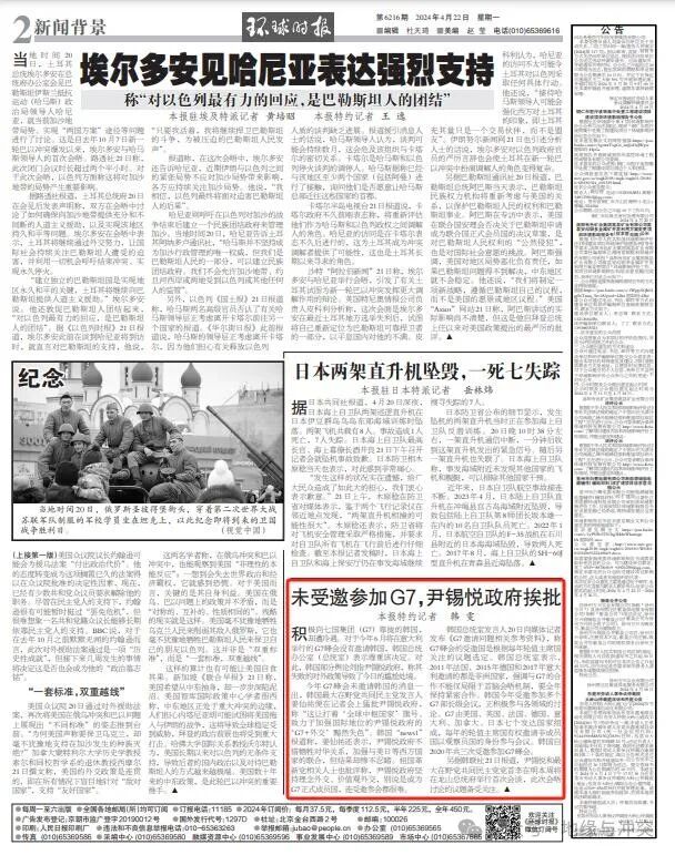 2024年6月将在意大利举行的G7峰会没有邀请韩国,韩国总统办公室(总统室)表示尊重该决定。对此,韩国部分舆论剑指尹锡悦政府,称其失败的对外政策导致了今日的尴尬处境。