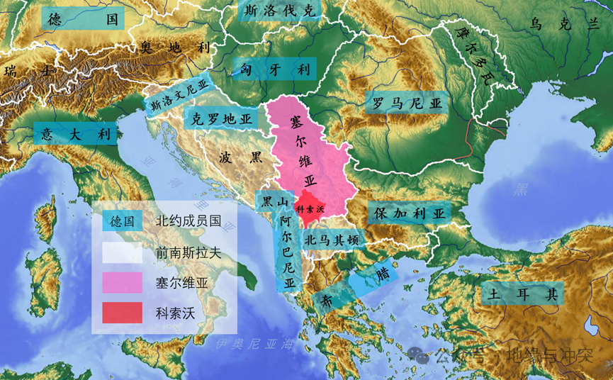 在小环境上,巴尔干诸国大多已经加入北约,仅有波黑和塞尔维亚没有入约,这两个国家已经被北约成员国所包围。