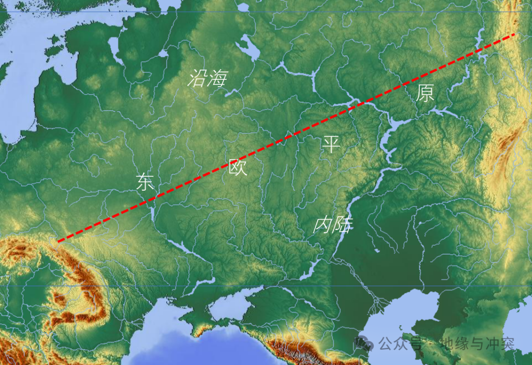 最后我们看东欧平原,同样是第四纪冰川期的冰蚀平原,位于北纬48°-60°之间,温带大陆性气候,我们把这个大平原按照内陆和沿海一分为二,沿海地区纬度较高,光照和积温严重不足,这一点还不如波德平原。