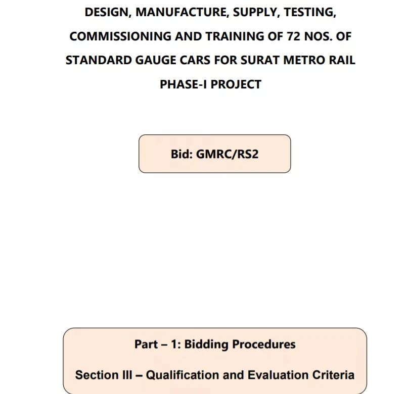 当地时间11月29日,印度苏拉特地铁项目1期发布项目招标——资格预审,将采购72辆全新的标准轨距地铁列车。