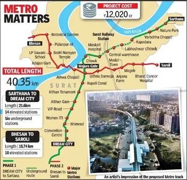 2012年8月,苏拉特市政公司为地铁项目提出四条线路方案