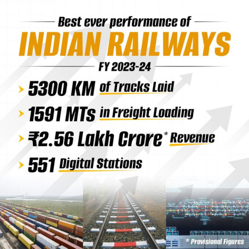 2023-24财年,印度铁路在货运量、铁路电气化、新线建设和运能提升等多个领域取得历史性突破,创下多项新纪录,为印度运输事业的持续发展注入了强劲动力。该财年总收入达到创纪录的2.56万亿卢比,比上一财年的2.4万亿卢比增长6.7%。