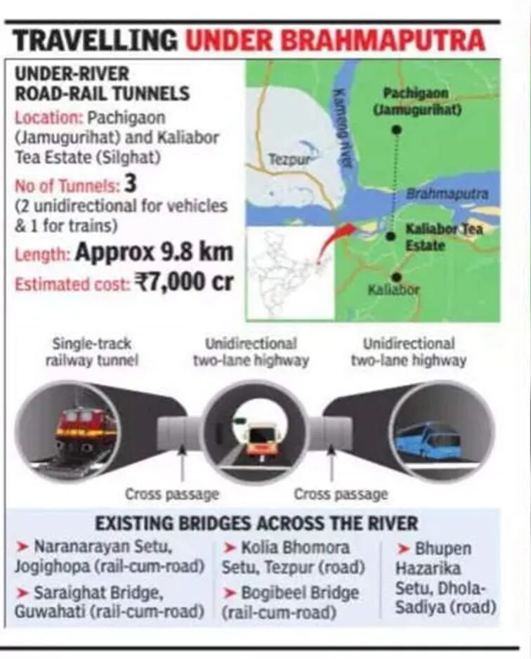 印度铁道部、公路运输部以及边境公路组织正计划在阿萨姆邦建造该国第一条横跨雅鲁藏布江的水下公路兼铁路隧道。