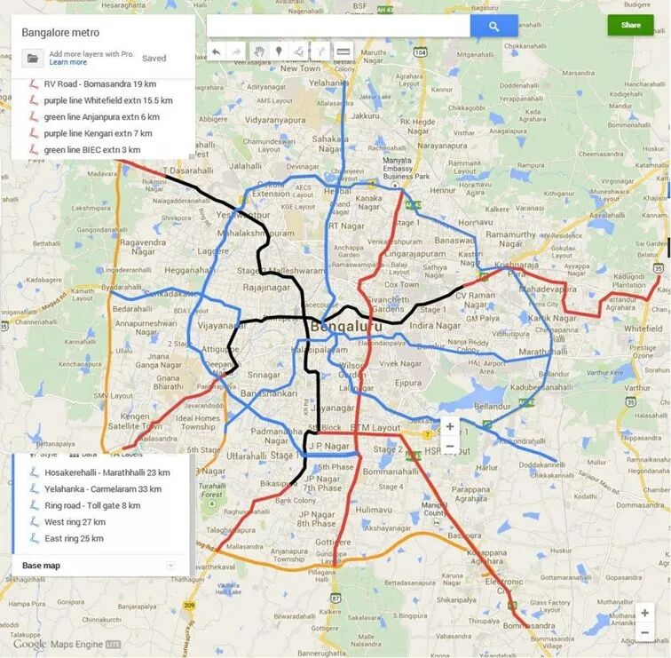 线路:沿着外环路(ORR)以西,从J P Nagar第四期沿ORR延伸至Kempapura
