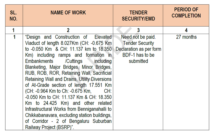 印度铁路基础设施开发公司(卡纳塔克邦)有限公司(K-RIDE)已经为郊区铁路网的拜亚帕那哈里-奇卡班纳瓦拉路段(马里奇走廊)的土木工程进行了招标。该网络的总长度为25公里,沿线有14个车站。该项招标不包含车站建设,铁路基础设施开发公司的总经理表示,目前正在与其他机构协商以最终确定车站设计,并会在稍后阶段进行招标。