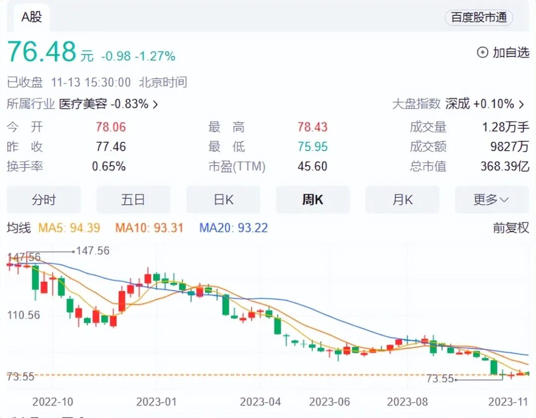 以当下华熙生物(688363.SH)每股76.48元来计算,较年初峰值138.75元已经下降超过40%。