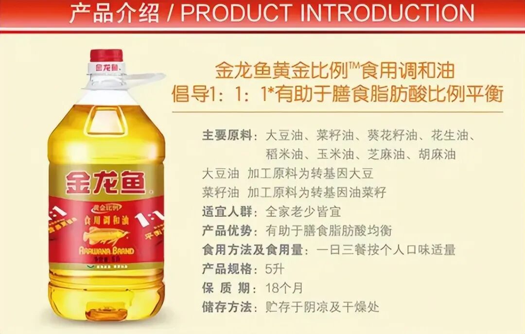 顶着这样一个讨好中国消费者的品牌名,以及大面积使用金色和红色的外包装,金龙鱼在中国市场上想不畅销都难。