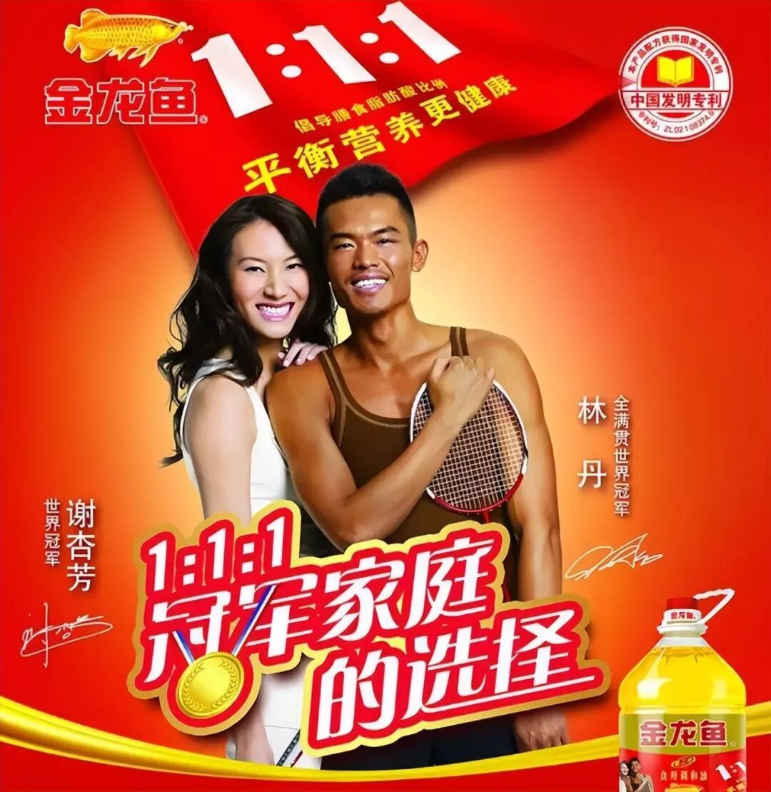 然而,金龙鱼却放弃了使用演艺明星,转而邀请了中国羽毛球界的“神雕侠侣”林丹与谢杏芳夫妇,用运动员独有的健美身材为自家产品做背书,效果也出奇的好。