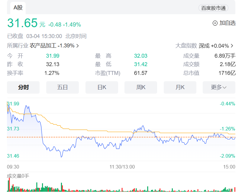 受上述乏善可陈的业绩表现影响,截至3月4日A股收盘,曾在2021年初高达145元/股的金龙鱼股价继续下行,已下滑至31.65元/股。