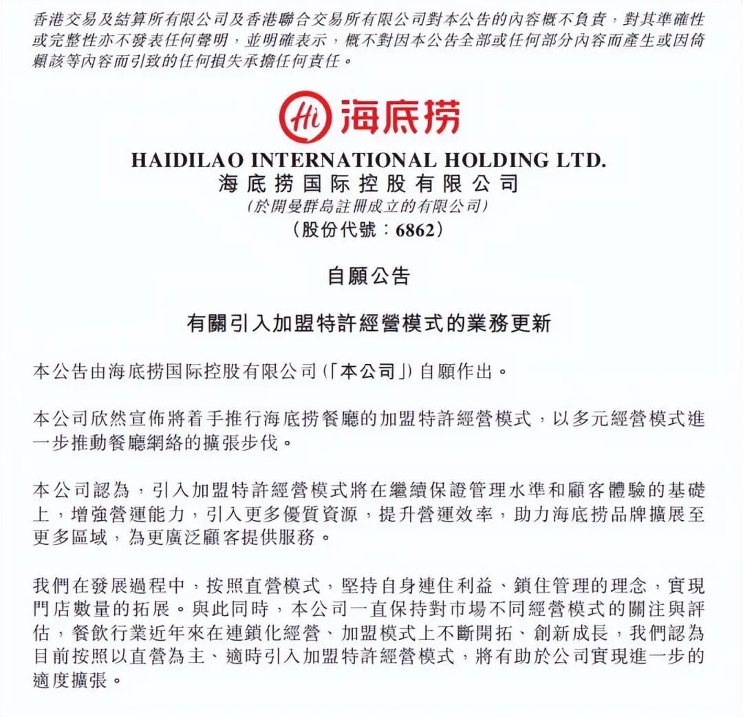 但是,海底捞这个已坚持自营30年的老牌网红,在毫无征兆的情况下选择开放加盟,还是让人感到匪夷所思。