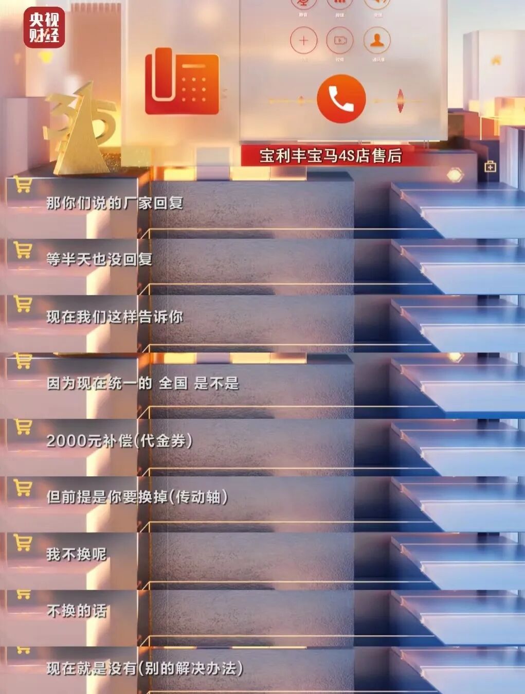 但是,陈先生拒绝了宝马4S店用2000元代金券更换传动轴的解决方案。他更希望宝马方面能够保障传动轴没有安全隐患。