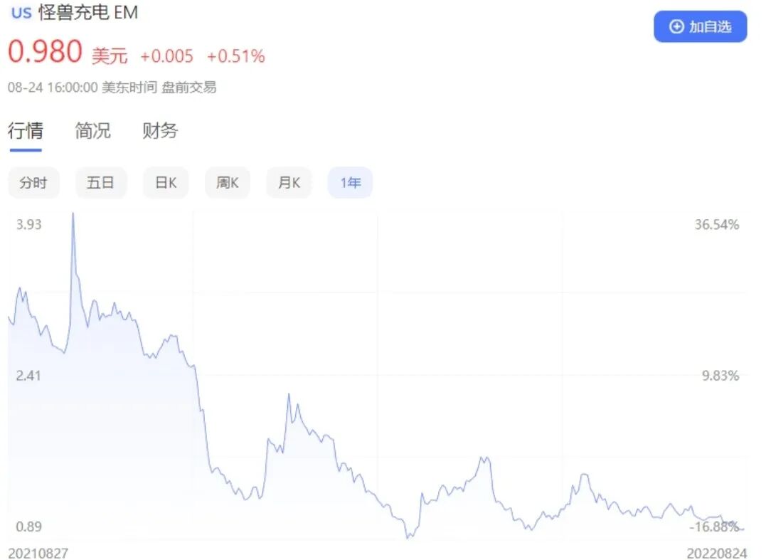 据官方数据显示,怪兽充电在2021年上市后,股价一直都是跌宕起伏。